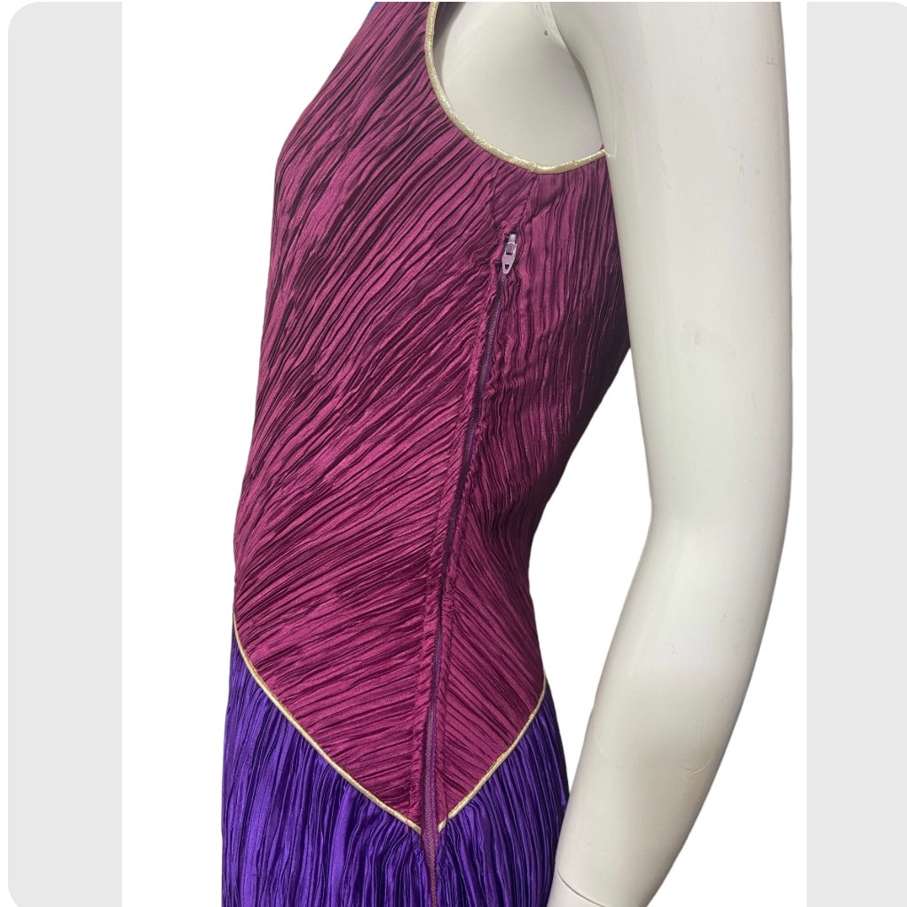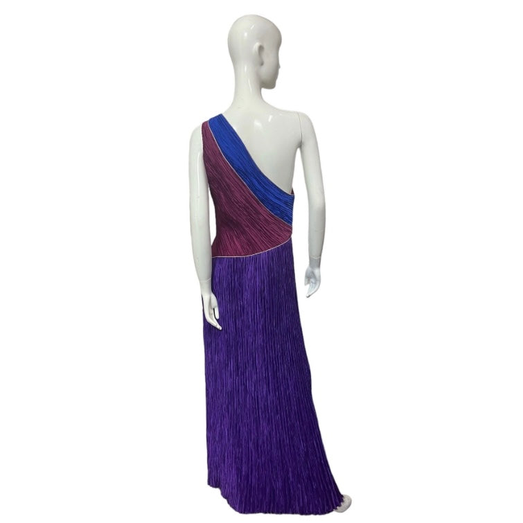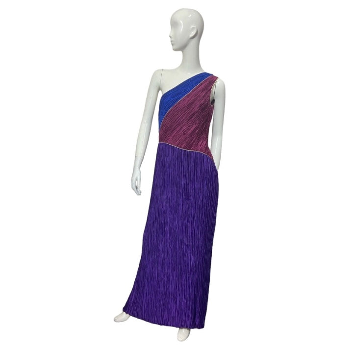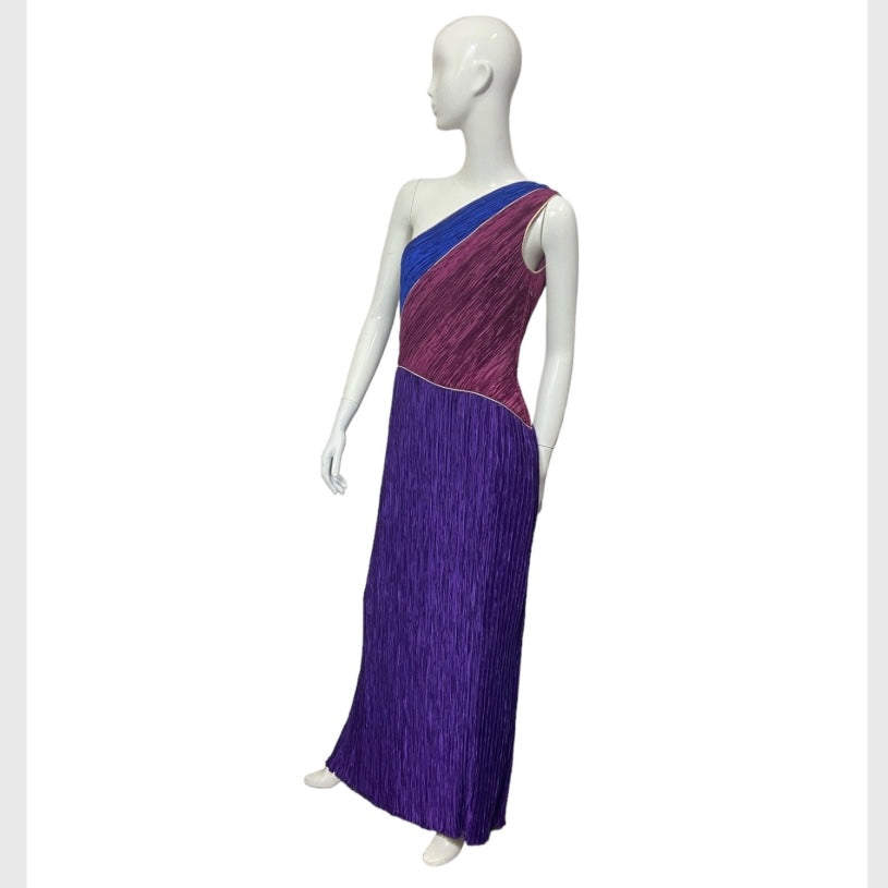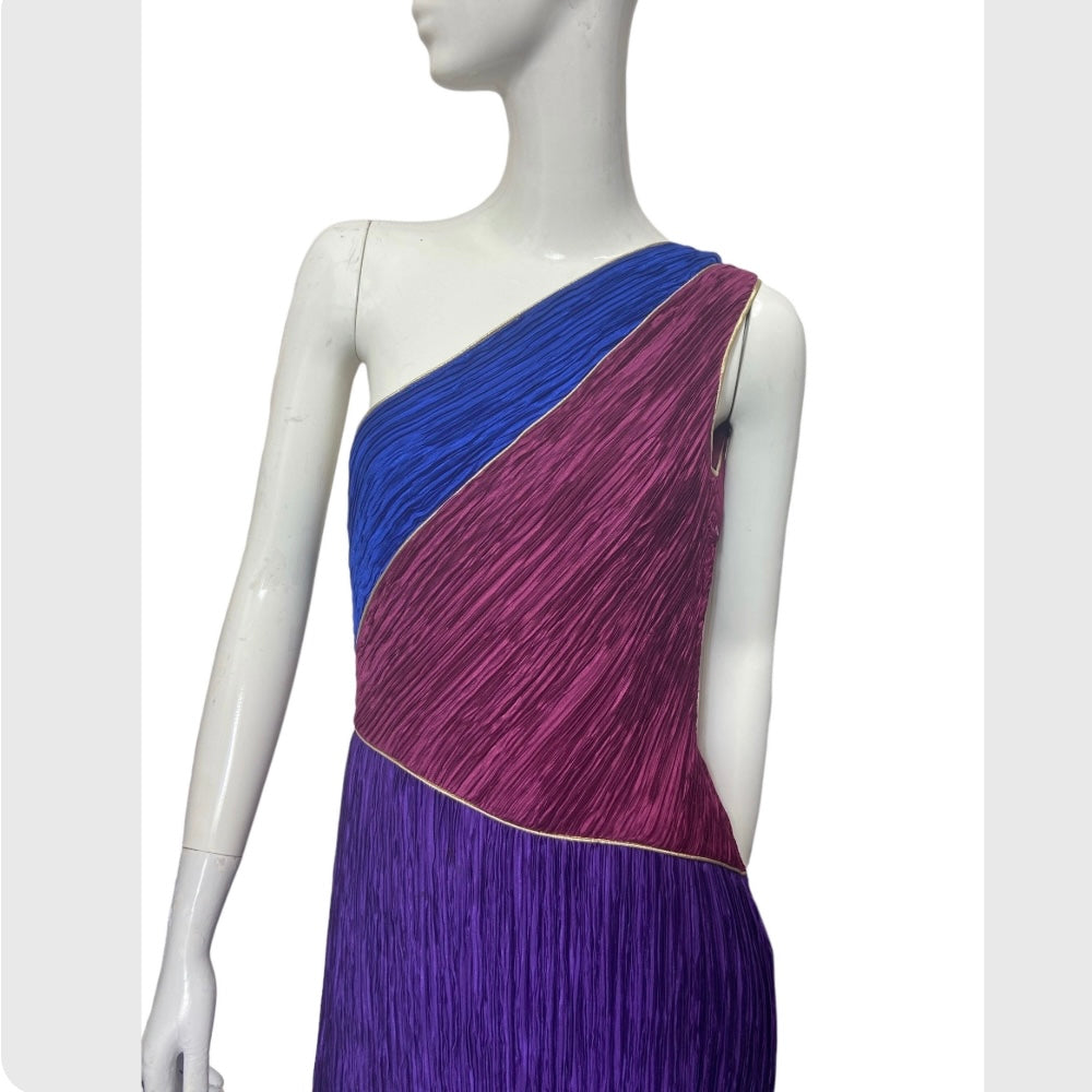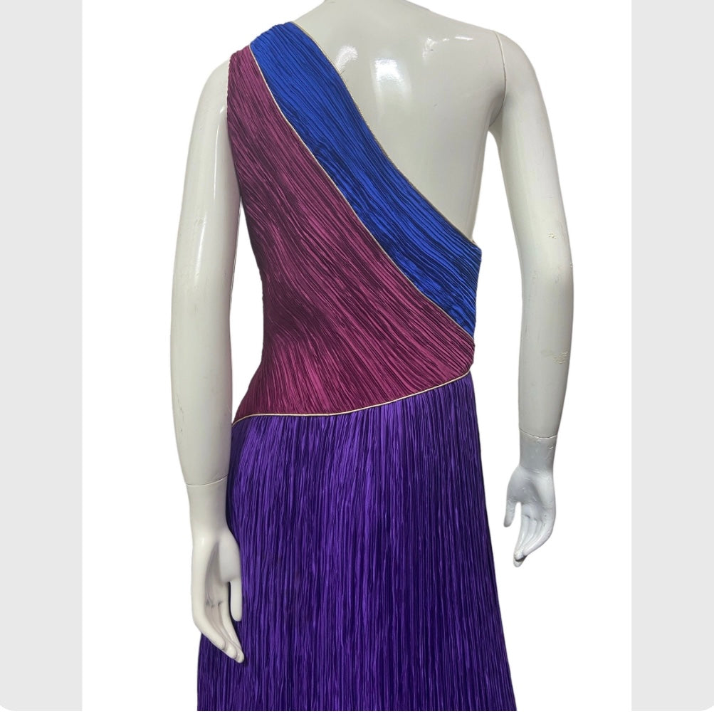80’s Mary McFadden One Shoulder Colorblock Plisse Gown