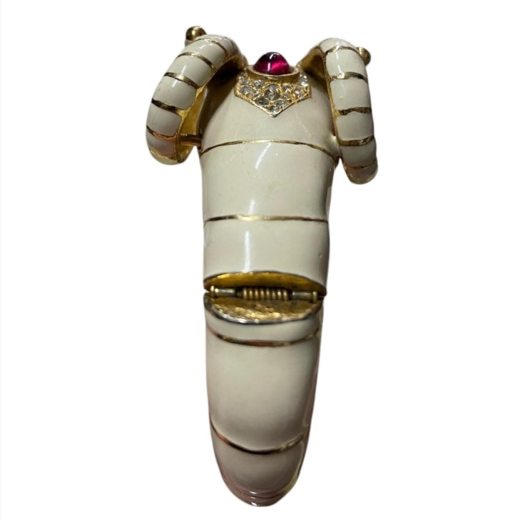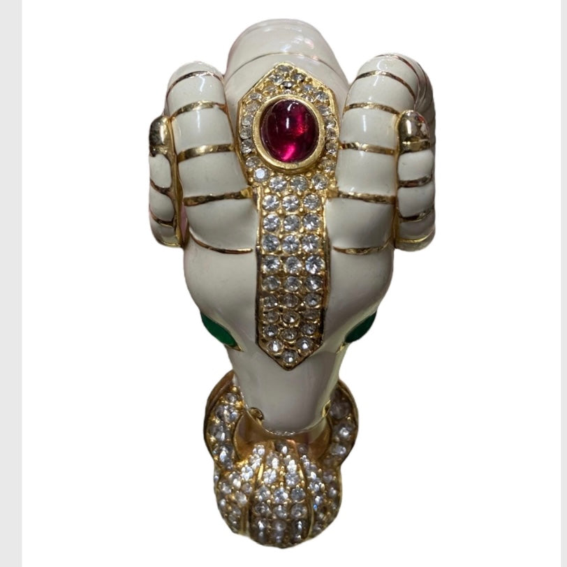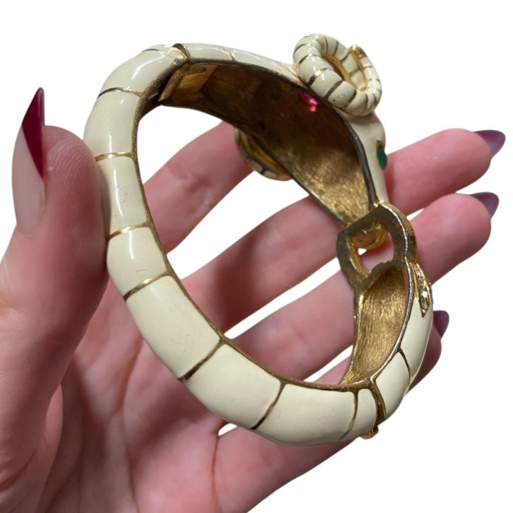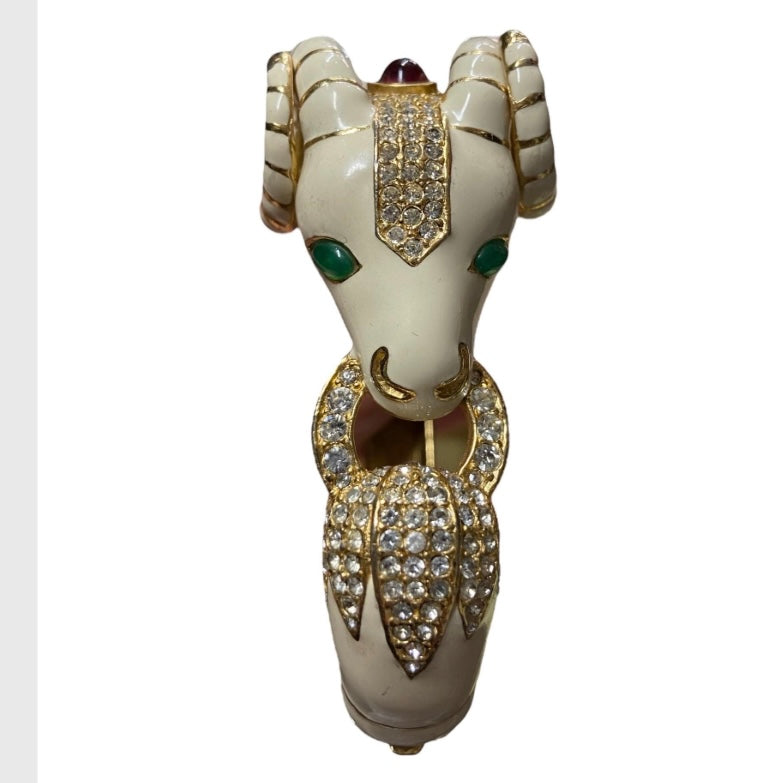 80’s Ciner Enamel Ram’s Head Bracelet with Rhinestones & Glass Cabochons