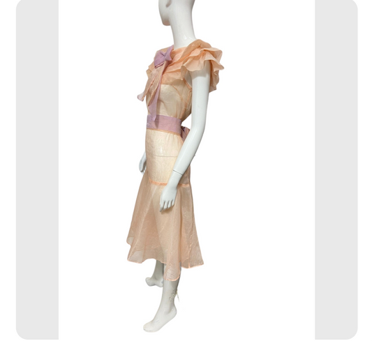 30’s Peach Organdy Dress with Ruffle Collar and Bow AS ISRegular price $289.00 USDRegular priceUnit price / per-