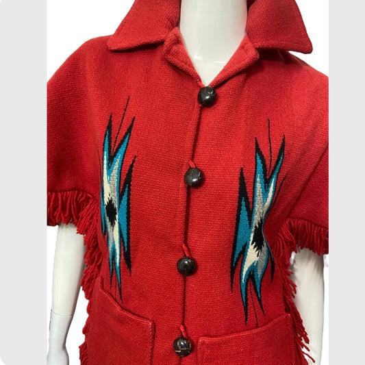 50’s Red Wool Chimayo Poncho Style Jacket with Fringe TrimRegular price $648.00 USDRegular priceUnit price / per-