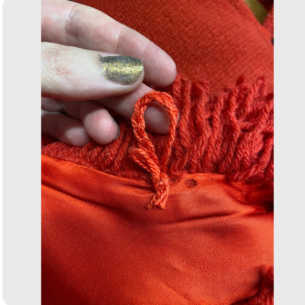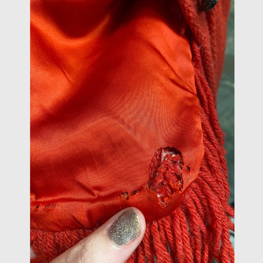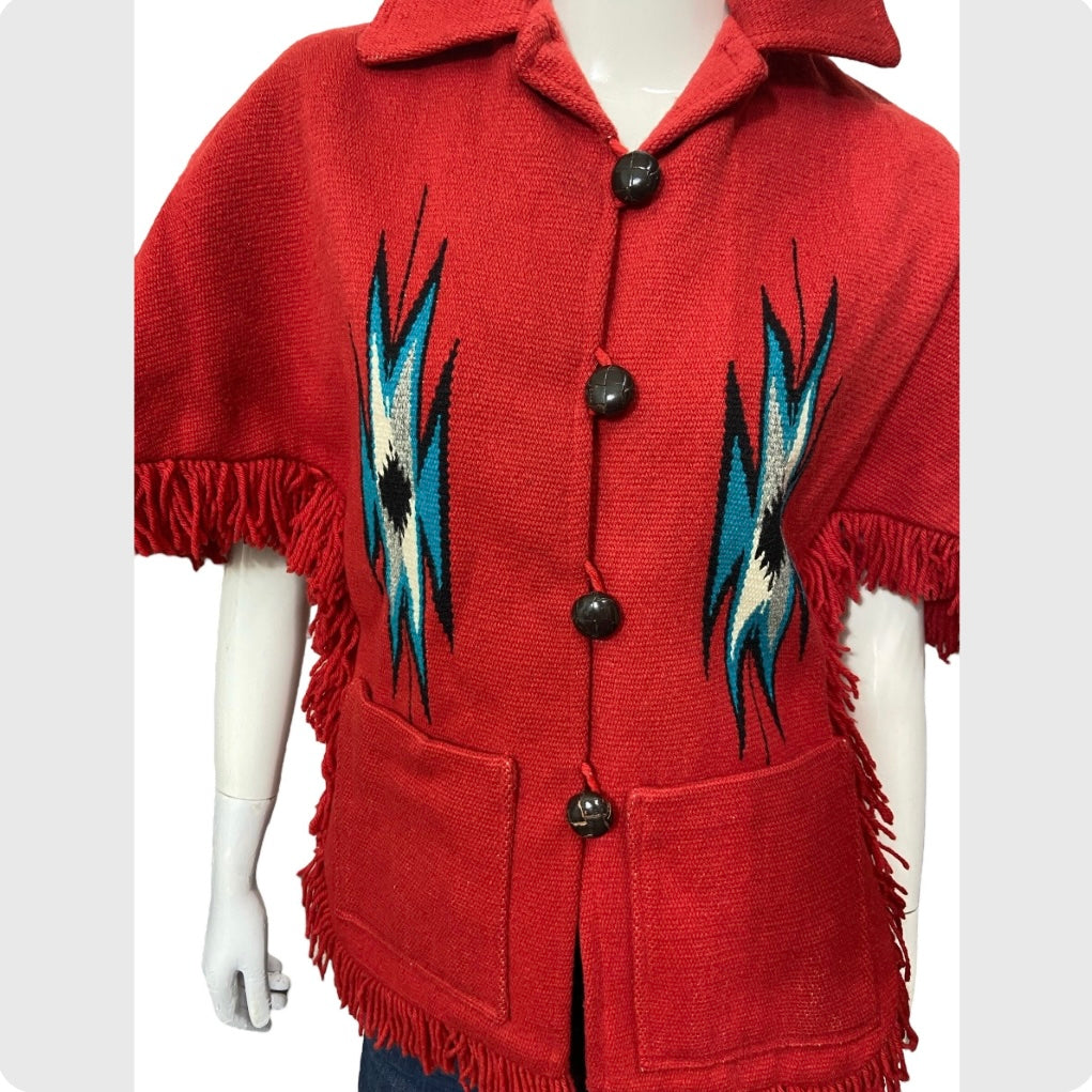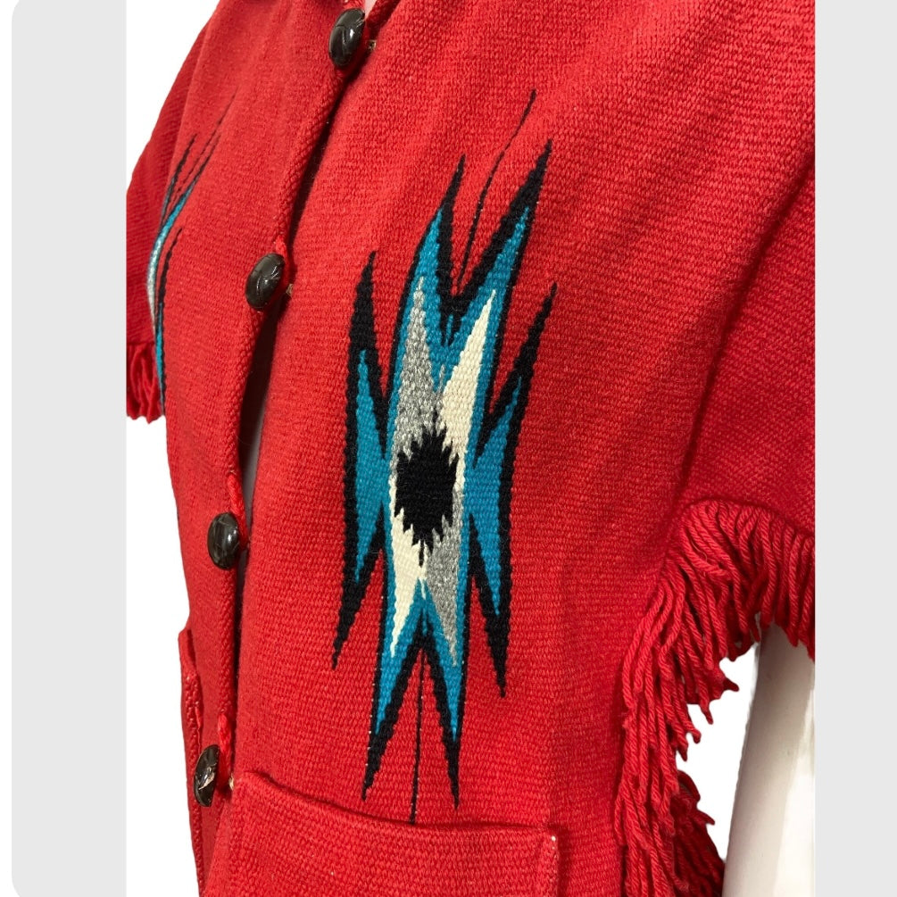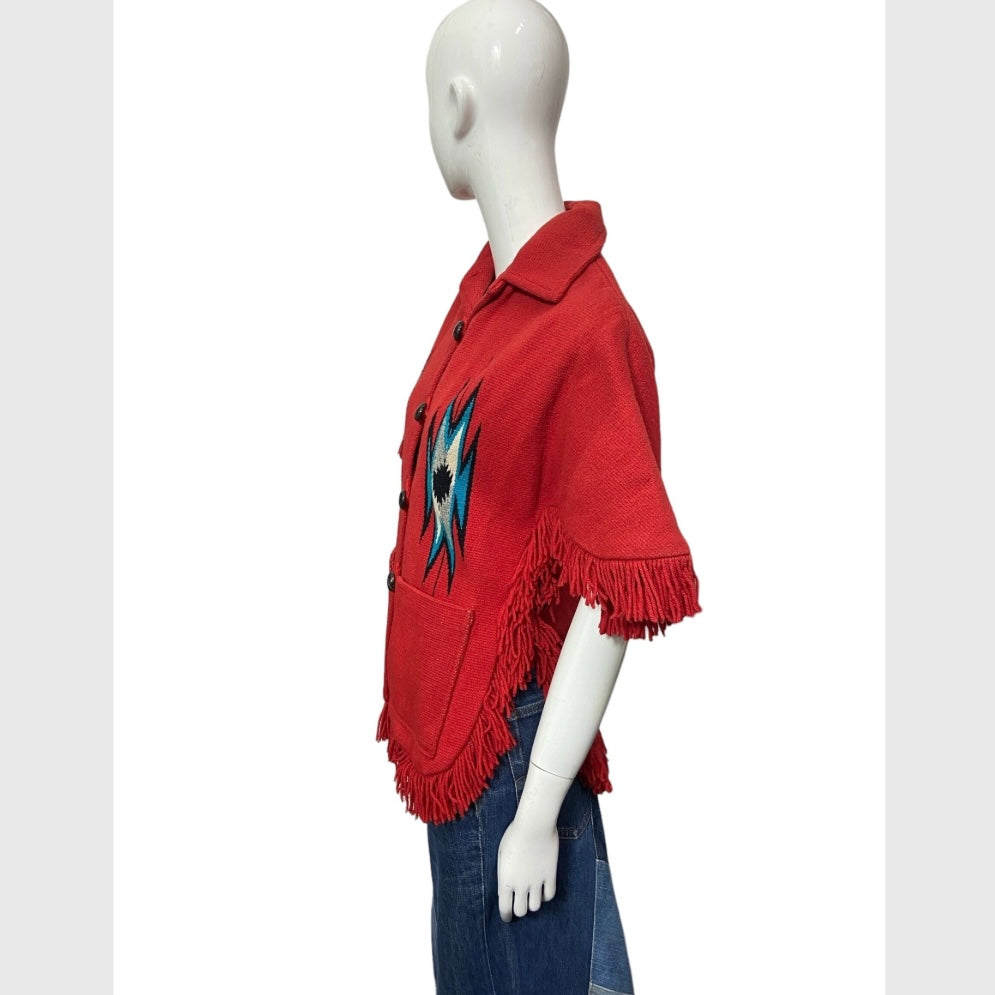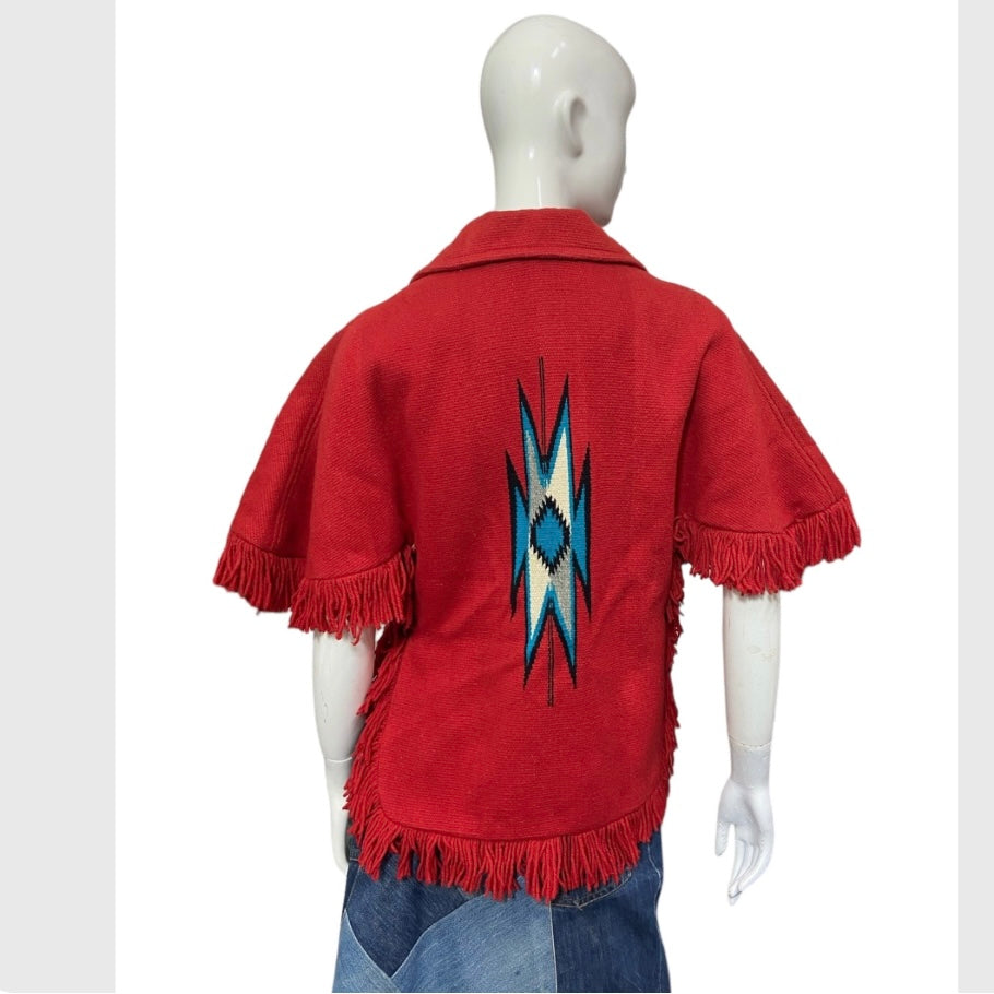 50’s Red Wool Chimayo Poncho Style Jacket with Fringe Trim
