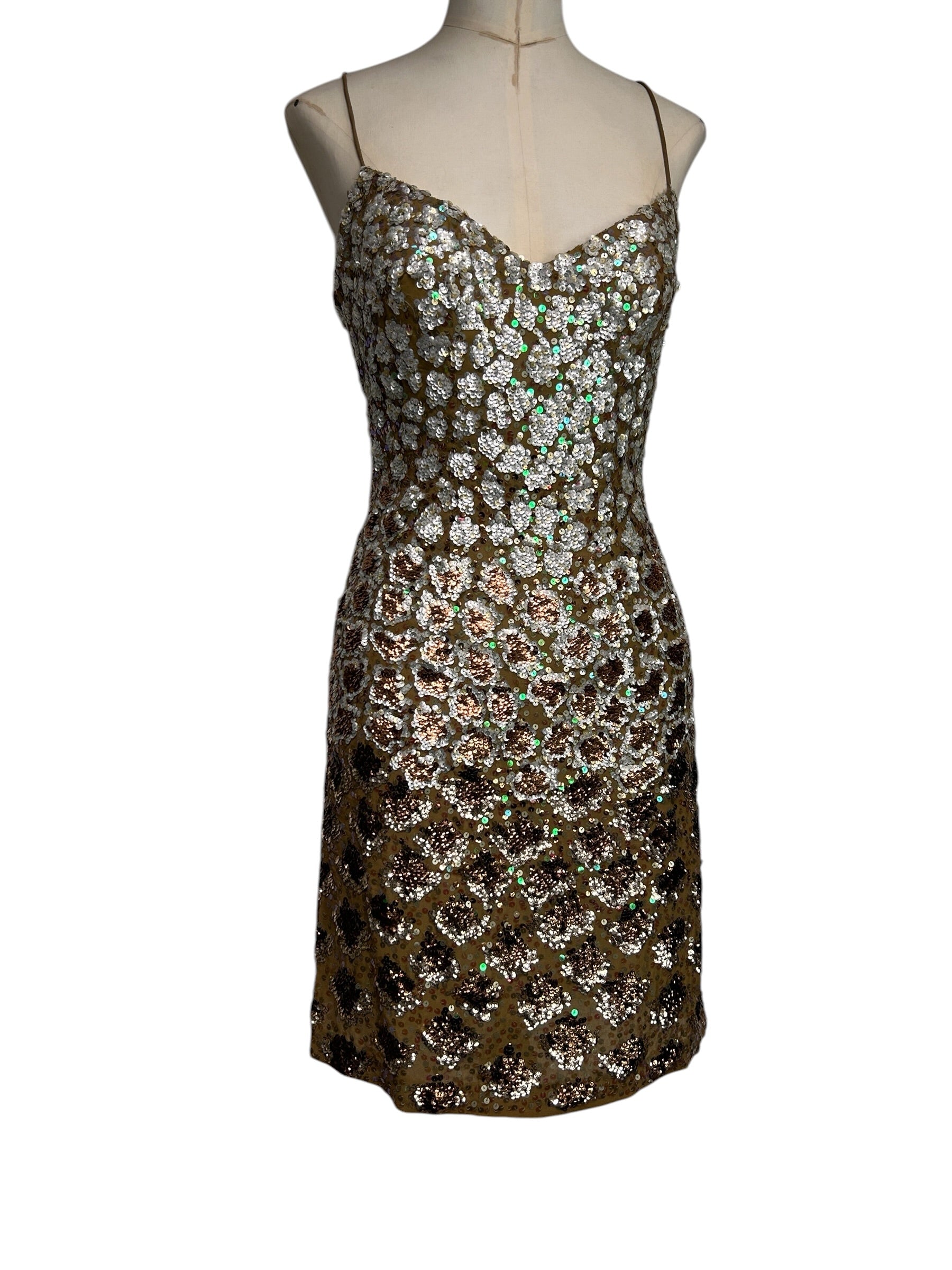 Deadstock Mandalay Bronze Sequin Silk Chiffon Dress — Size 6 — Embellished Vintage Mandalay