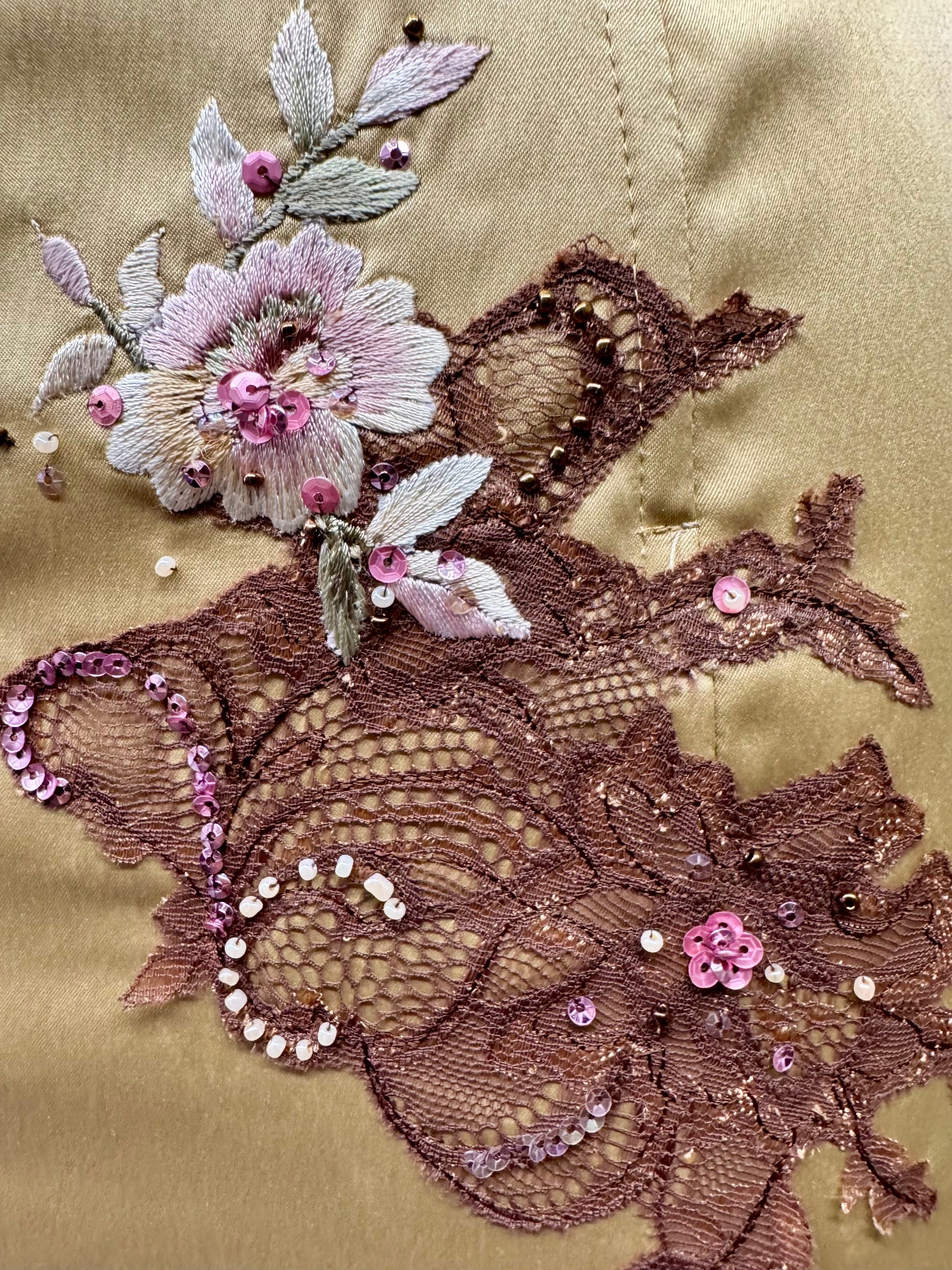 This is a beautiful vintage Y2K Deadstock Julian Joyce by Mandalay dress. Here’s a quick breakdown of its features based on your image and description: